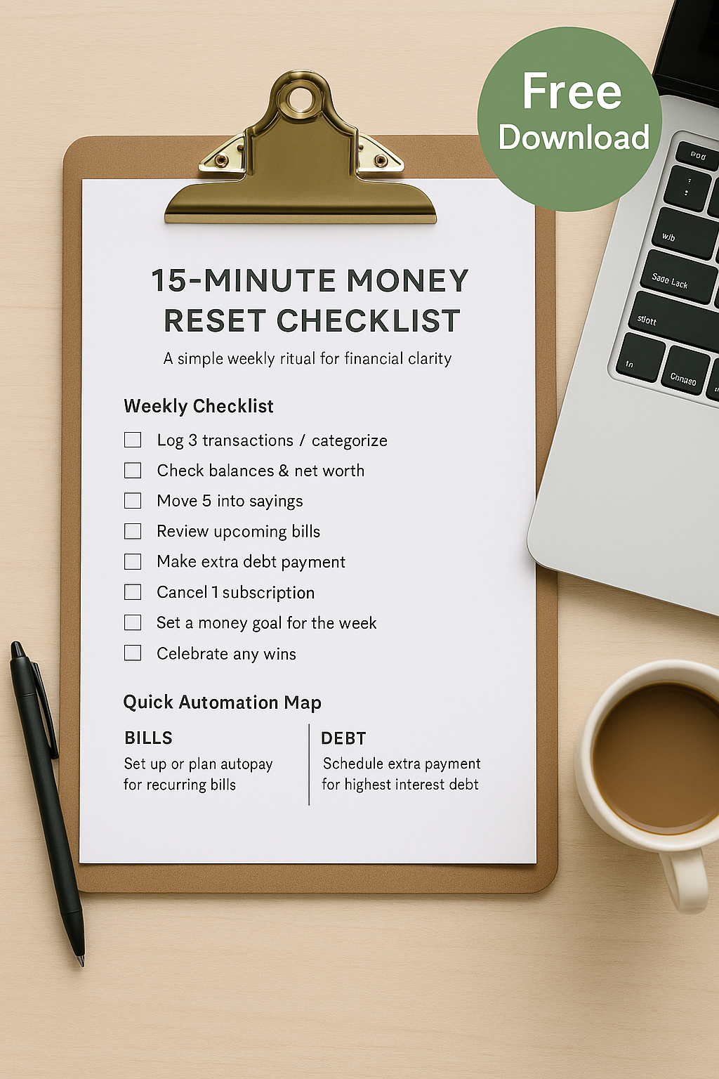 The 15-Minute Money Reset Checklist gives you a simple, repeatable system to: