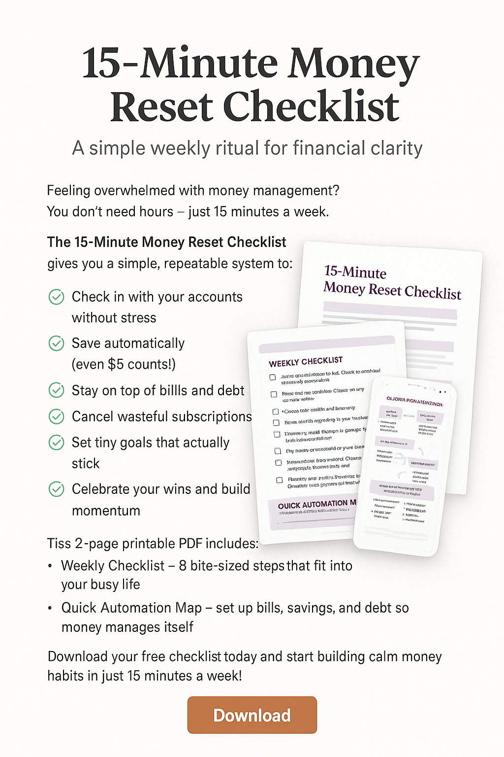 👉 Download your free checklist today and start building calm money habits in just 15 minutes a week!