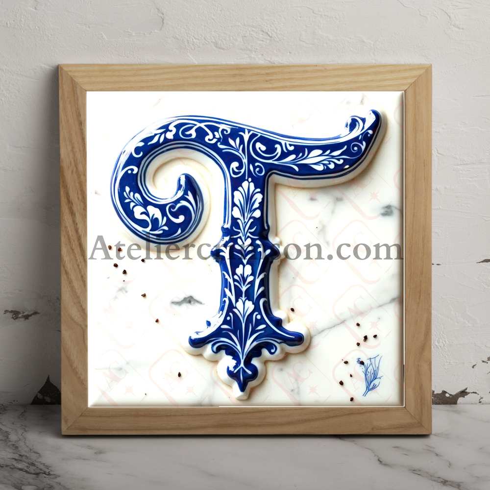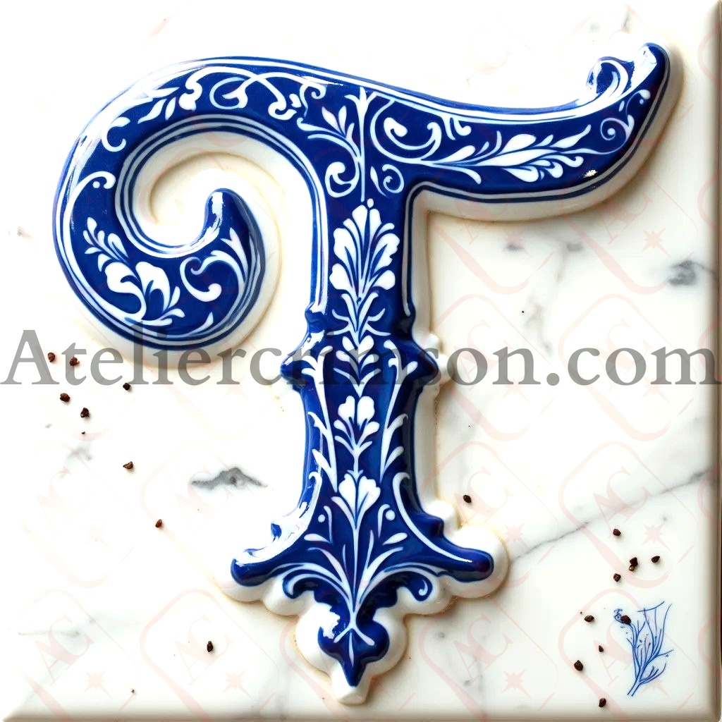 The letter T delftware blue tiles Download Now this high quality AI-generated image, perfect for adding a touch of tranquility and creativity to any space.