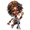 Unleash the vibrancy of Afrocentric culture with our top-selling bundle of 10 PNG images, featuring an extreme caricature of a Black woman who embodies confidence and artistic flair. These premium images, showcasing a radiant character with thick faux locs adorned with cowrie shells and rings, are a celebration of creativity and style.