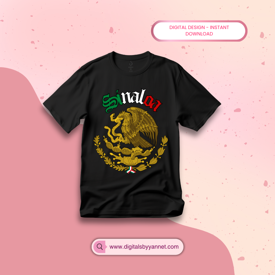 Sinaloa Mexico Bundle digital png / 3 files Mexican Eagle design /Mexican Flag t-shirt png design / DTF transfer file