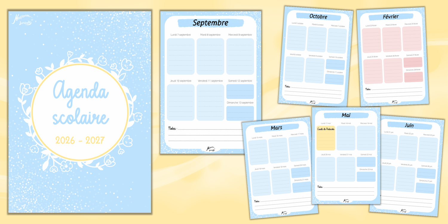 Agenda scolaire assorti au Carnet de bord 2026-2027. Vous y trouverez :