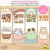 Printable Bookmarks Set of 4 Cats and Coffee | Cute Bookmark Gift Set