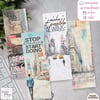 The size for each bookmark is slightly bigger 2.1"x 6.2" while designing. You may trim it down to 2"x6" or simply follow along the line to cut.