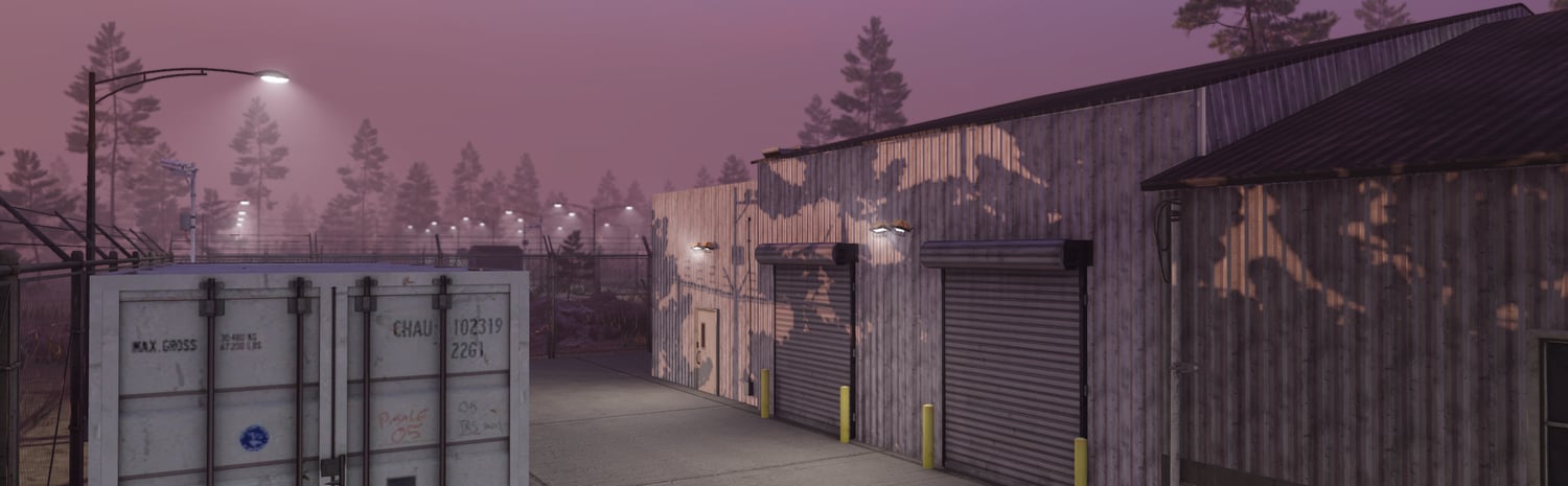 This large-sized airfield map is primarily designed for patrol and security MILSIMs. It features a vast network of roads and checkpoints, making it ideal for patrolling, infiltrating, and raiding. The map includes an airstrip, an entrance gate, a security gas station area located outside the airstrip, a warehouse, and a container site. Maintenance roads run parallel to the fence, and there are also expansive forests and paths throughout the area.