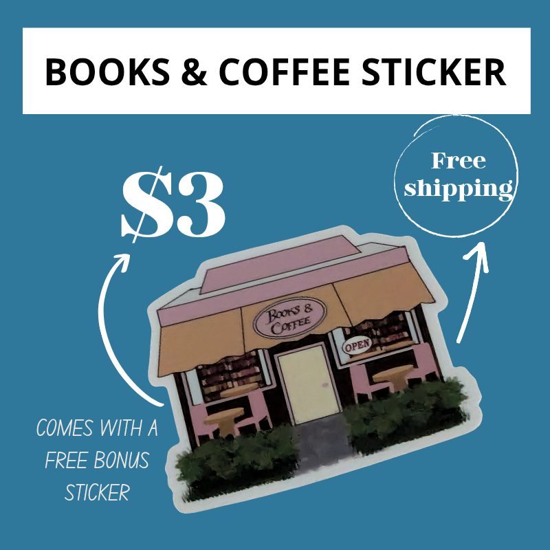Books & Coffee Sticker + Free Mystery Bookish Sticker