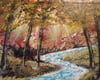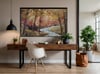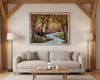 River of Light is an abstract landscape born from texture, layering, and motion. Earth tones, softened reds, mossy greens, and a single ribbon of blue create the feeling of a current cutting through memory, time, and terrain. It’s reflective, grounding, and deeply human.