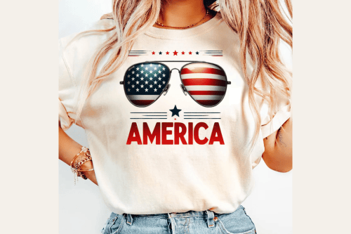 America Shirt Sublimation Design - 4th of July Patriotic T-Shirt - Merica Glasses USA Theme - Unisex & Women's Independence Day Shirt - Fun & Festive American Celebration - Instant Digital Download - 300 DPI PNG