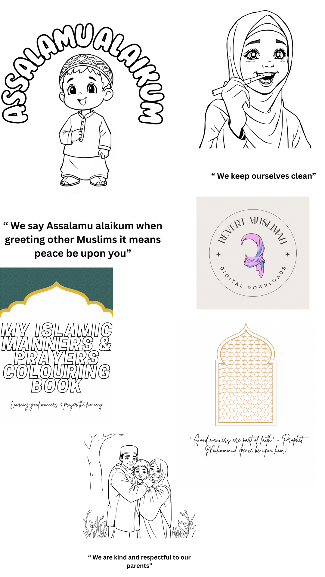 A book to help children learn manners and important things to do and say in Islam whilst being able to colour in a fun way for them to learn.
