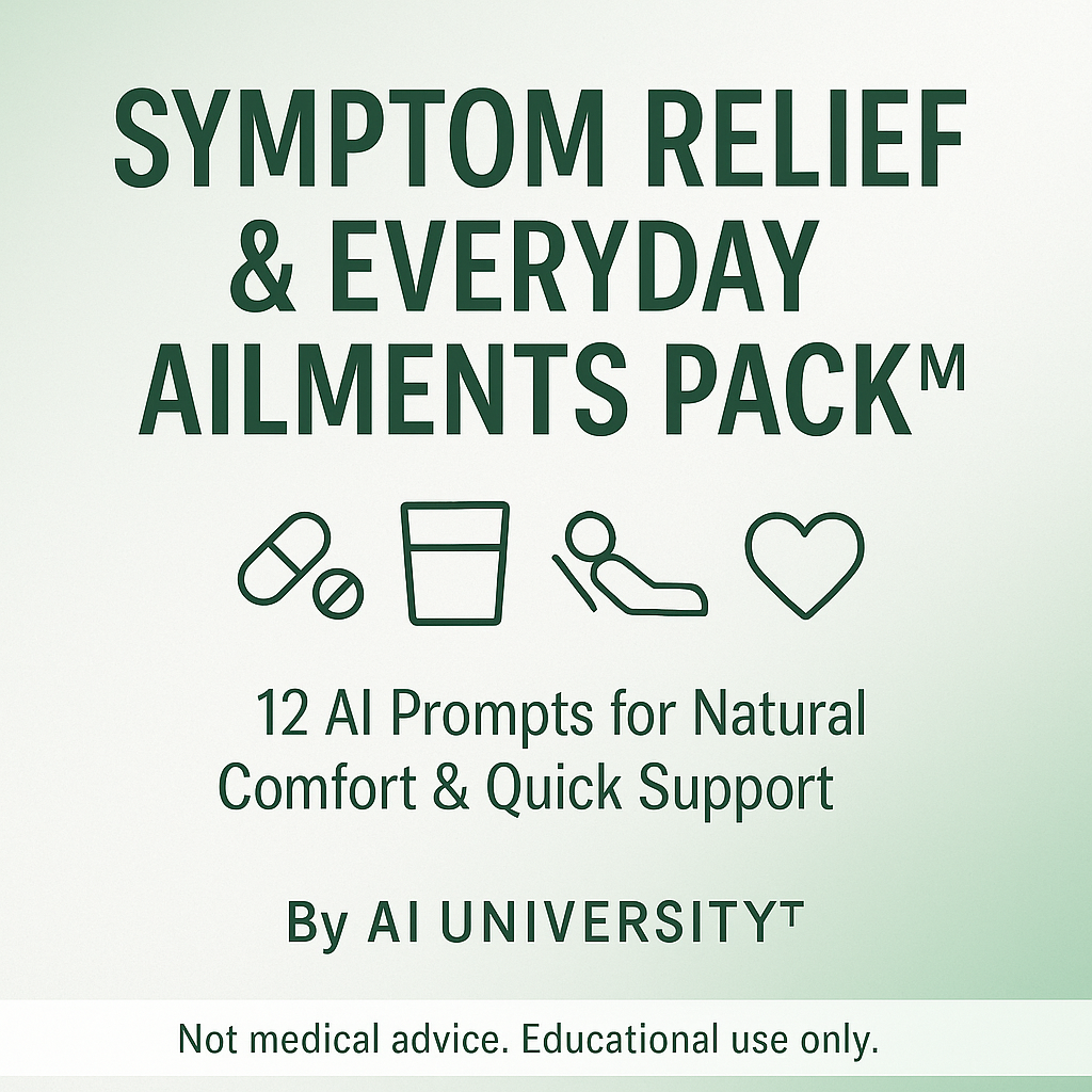 Symptom Relief & Everyday Ailments Pack™: 12 AI Prompts for Natural Comfort & Quick Support