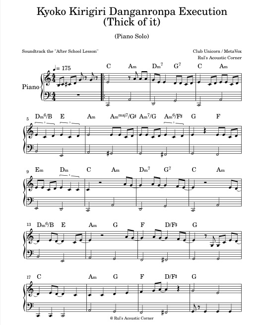 Kyoko Kirigiri Danganronpa (Thick of it) | Piano Solo PDF Audio