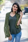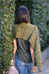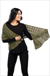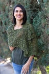 “Leafy Paths” is a lacy rectangular wrap knit in lightweight yarn so it can be worn over an outfit on a breezy afternoon or over an evening gown or as an accessory over a shirt, tee or top. The wrap uses a leaves lace stitch pattern and a central mesh pattern.