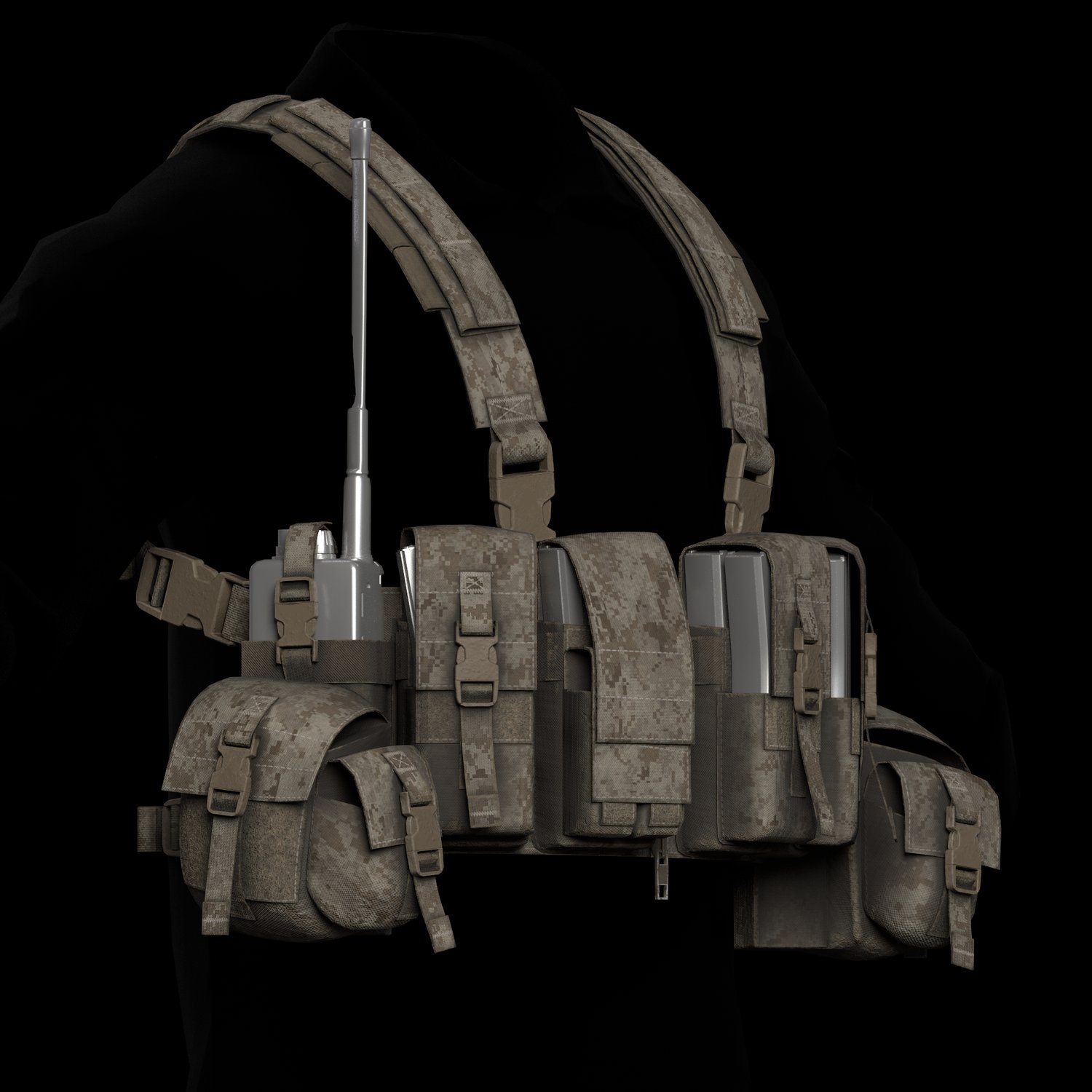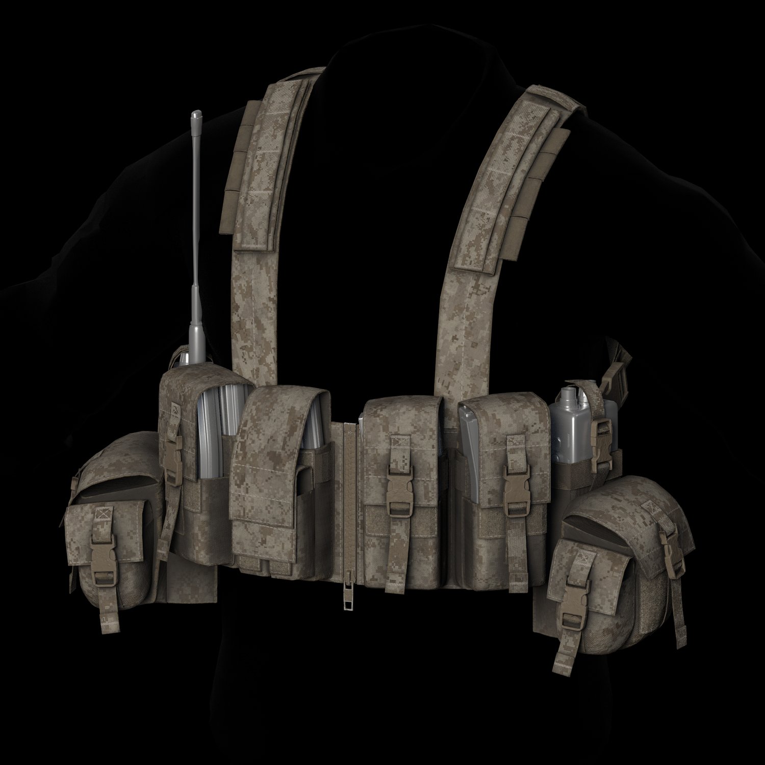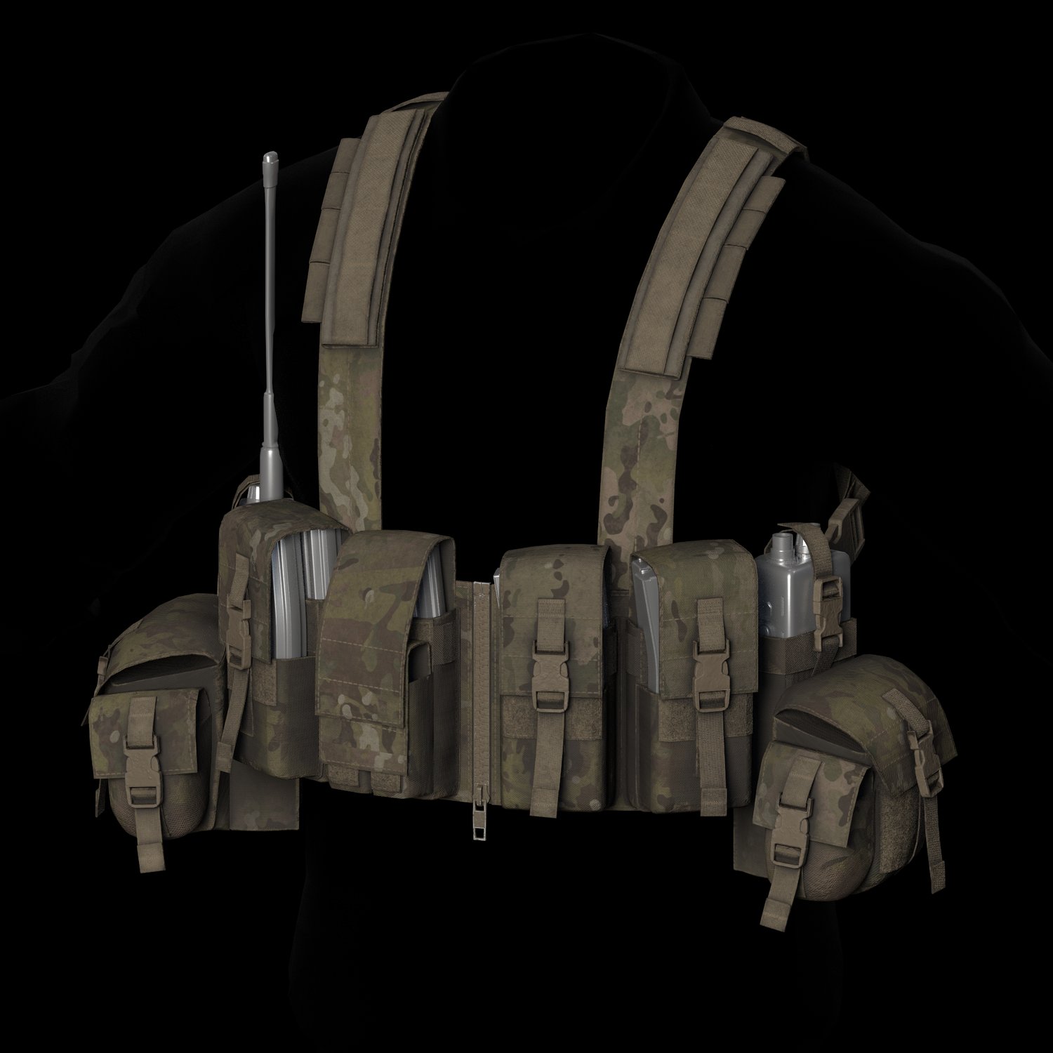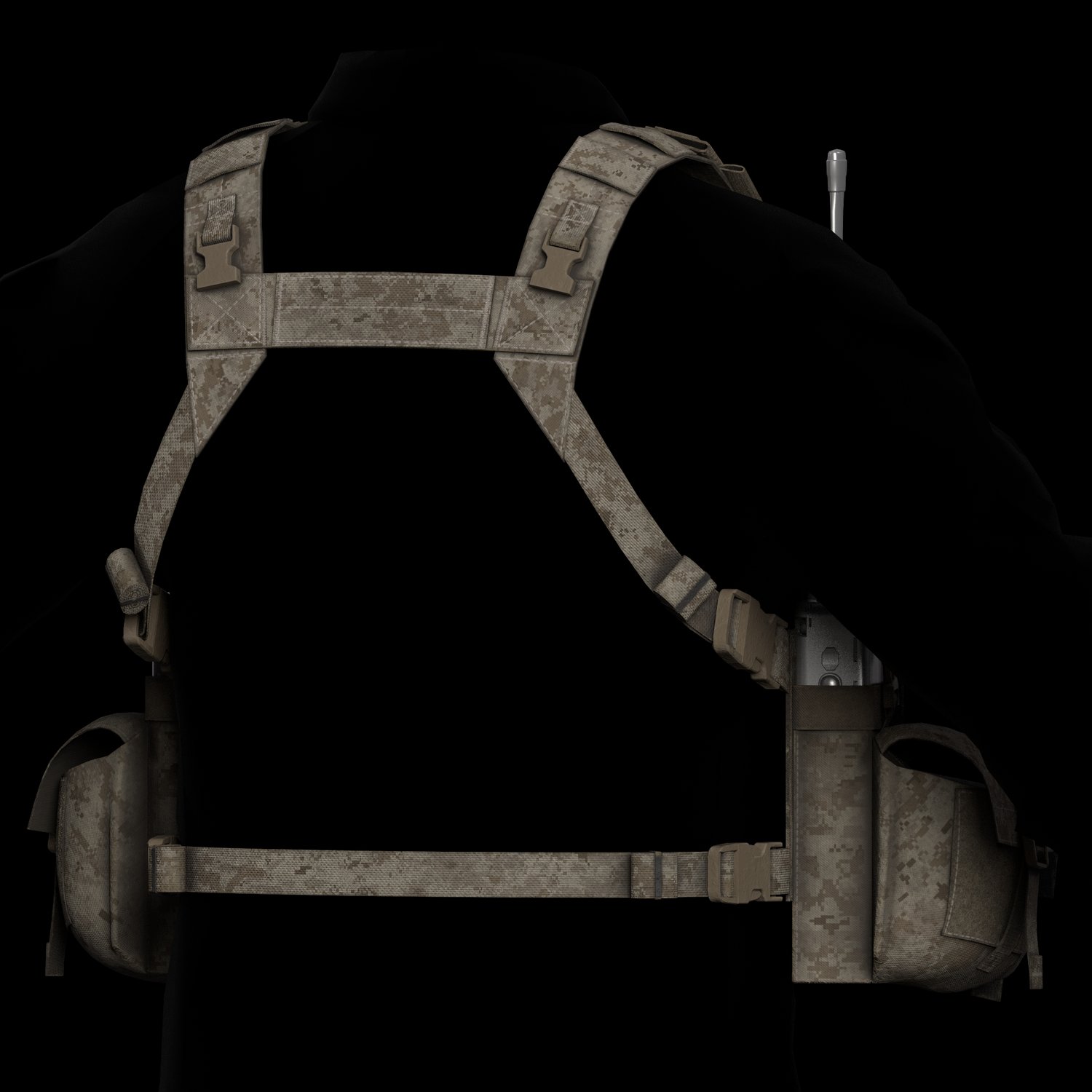The LBT 1961A-R Zippered Chest Rig from London Bridge Trading is a durable, mission-ready load-bearing platform built in the USA. It features a front-center zipper for quick access, four double 5.56 magazine pouches, two radio pouches, and two NVG/battery pouches with external utility pockets. The rig also includes rear map pockets with hook-and-loop closures, a concealed holster compartment, and padded adjustable shoulder straps with antenna and hydration-tube guides. Designed for stability and comfort, it uses a 1-inch adjustable waist strap with side-release buckles, making it a versatile choice for professional field operations.