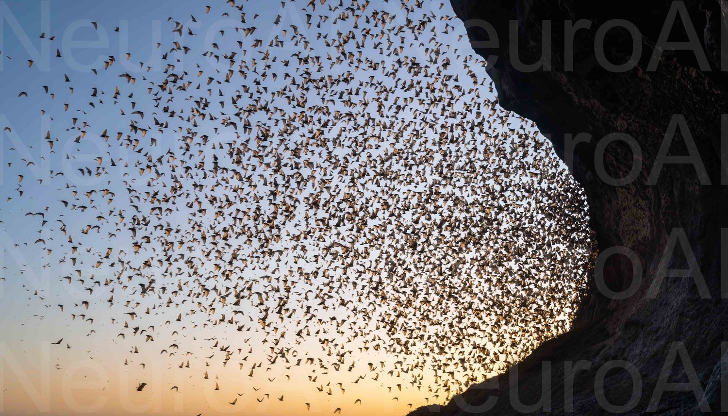 Spectacular mass bat migration at dusk from cave