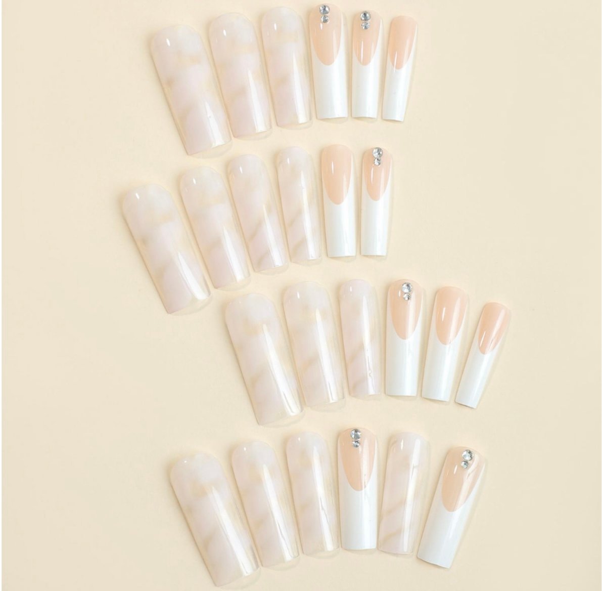 Timeless, elegant, and effortlessly chic—these Classic White French Tip Press-On Nails are perfect for any occasion! Featuring a crisp white tip with a natural base, they offer a salon-quality manicure in minutes without the hassle. Made with durable, high-quality material for a long-lasting wear, these press-ons are easy to apply, reusable, and perfect for both everyday glam and special events.