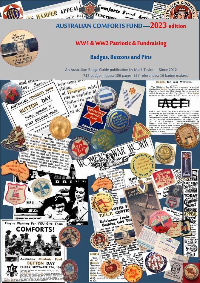 Just published & revised brand new Australian Badge Guide on WWI and WW2 era fundraising and patriotic badges issued by the Australian organisation, the Australian Comforts Fund (ACF).