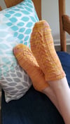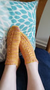 These fun little socks have a sweet heart cable pattern running up the outer half of each foot. The adorable cable pattern is interesting and fun to knit, but is simple enough not to get lost in a beautiful variegated yarn. These socks are knit toe up, with a German short row toe and heel. I have made mine ankle height, but they could easily be made taller. This pattern is written for magic loop, but is simple to change if you prefer a different method. The cable pattern is both written and charted.