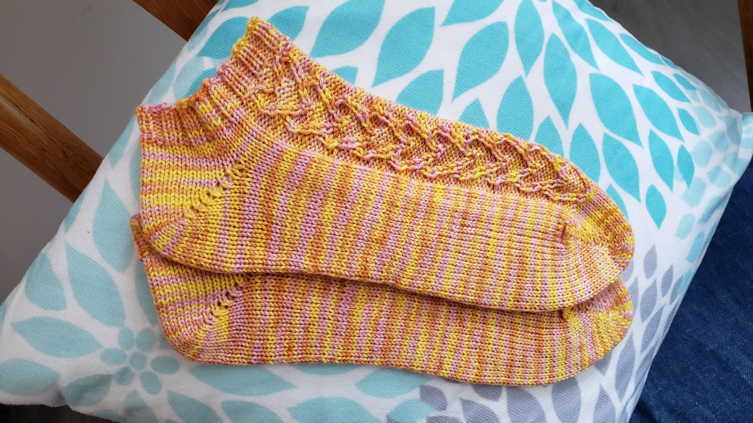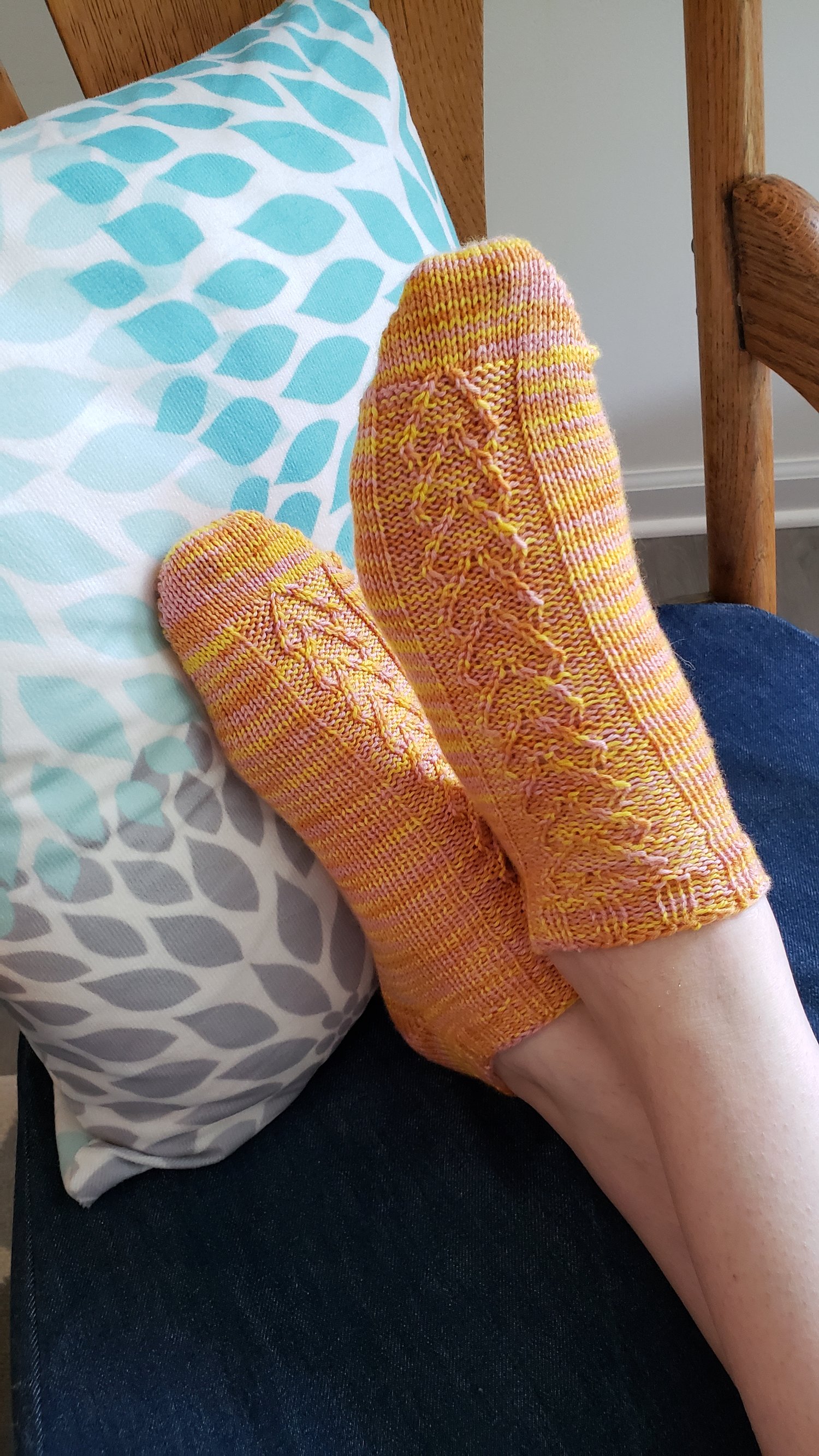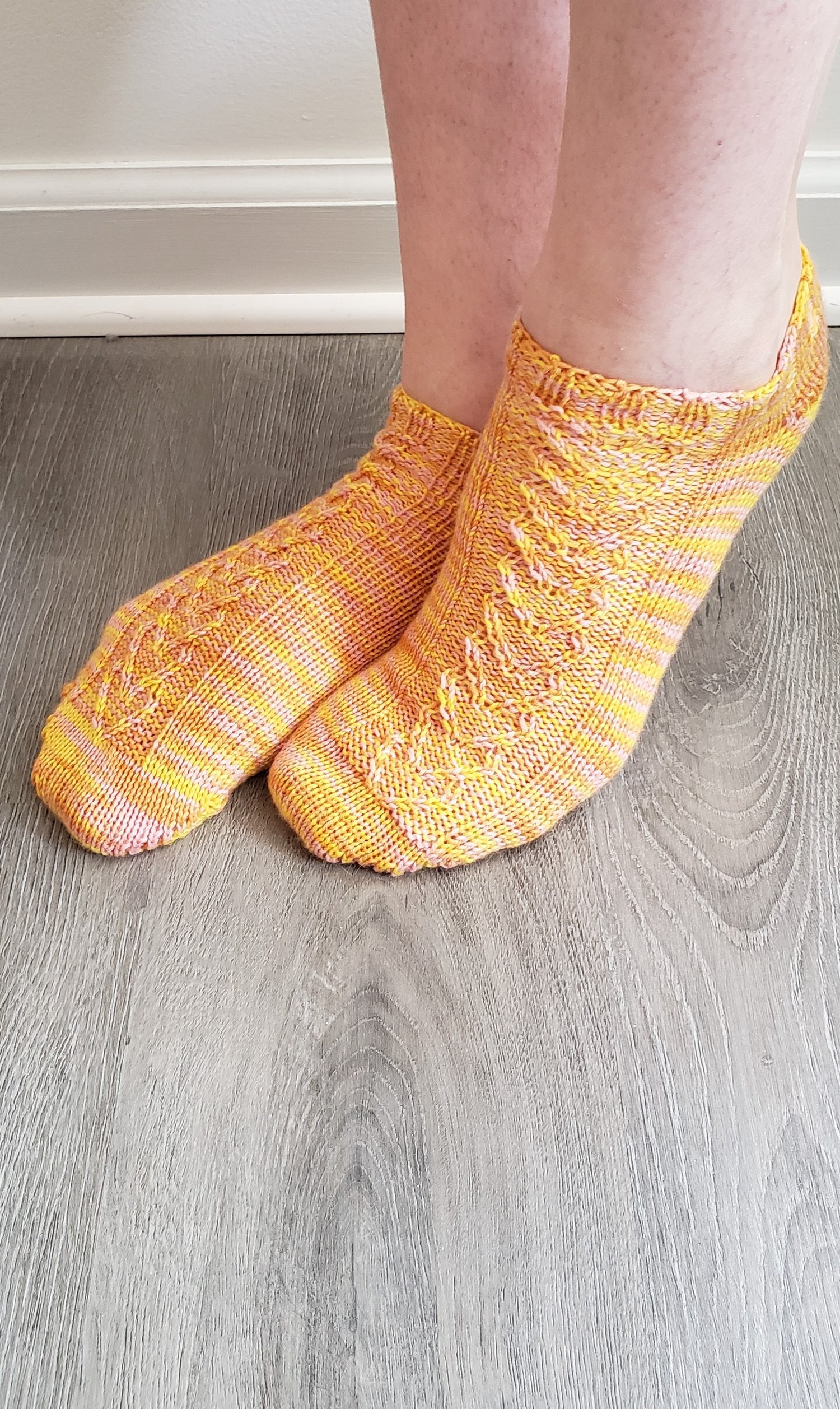 Sample used Knitologie Cozy Sock (75% Superwash Merino Wool/15% Nylon/10% Cashmere, 439 yd 400 m/100 g) in colorway Citrus Squeeze