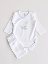 Le body à manches longues est fabriqué en 100 % coton doux et respirant, certifié OEKO-TEX®, parfait pour les peaux sensibles des bébés. Les collants unis avec élastique renforcé assurent un confort optimal et un maintien parfait. 🌸