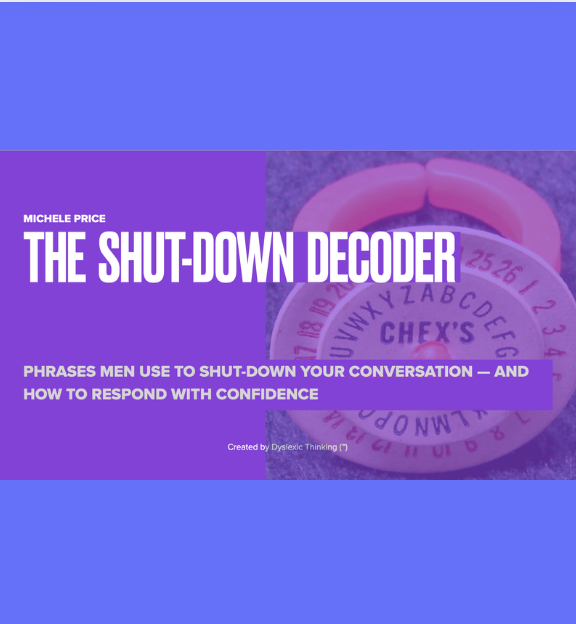 The Shut Down Decoder is your step-by-step guide to recognizing and overcoming conversational roadblocks. Created through a neuroscience-backed approach, this practical program cuts through the fluff to deliver what you really need: the tools to transform conversations, build authentic connections, and reclaim your voice.
