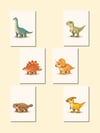 → 6 illustrations: T-Rex, Triceratops, Stegosaurus, Brachiosaurus, Parasaurolophus, Ankylosaurus