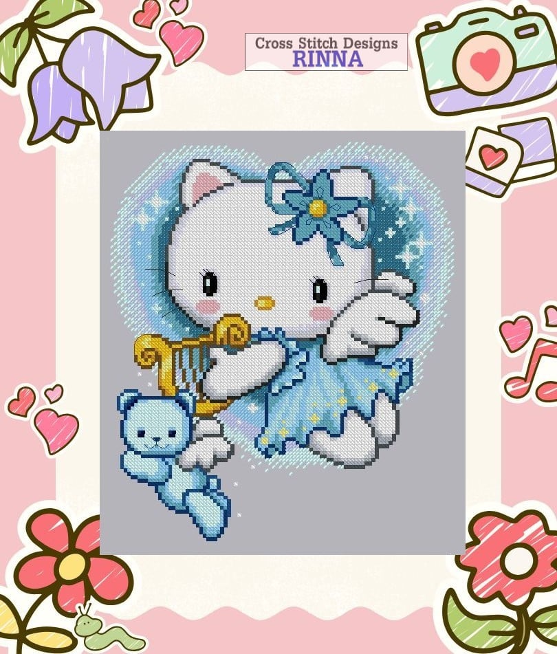 Cute Kitty ANGEL of MUSIC - Cross Stitch PDF Downloadable Patterns