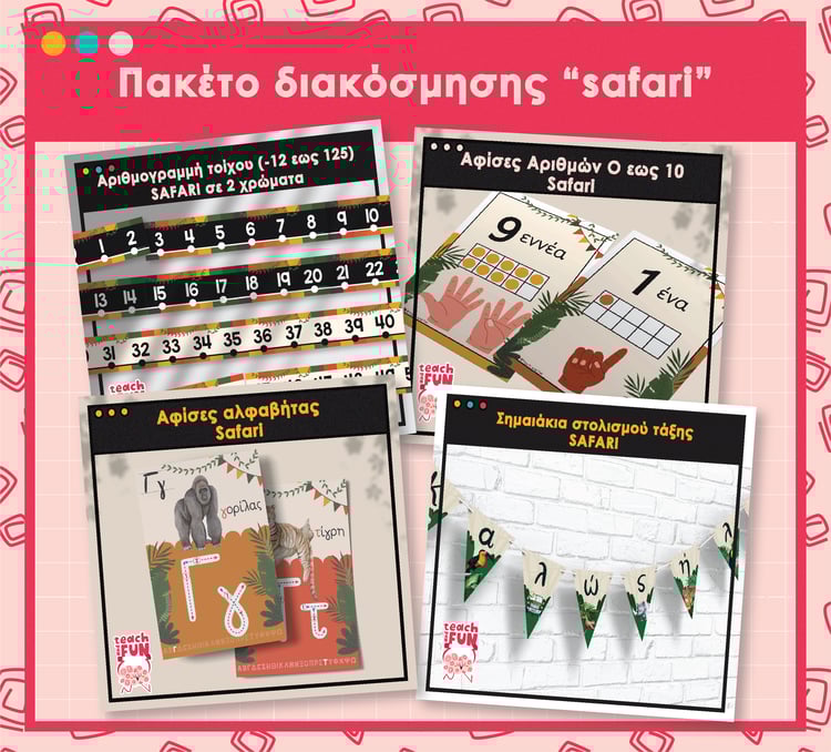 Συνδύασέ τη με τις καρτέλες ΑΒ (safari), τις αφίσες με τους πολύχρωμους αριθμούς 0 έως 10 (safari), και με τα σημαιάκια καλωσορίσματος.