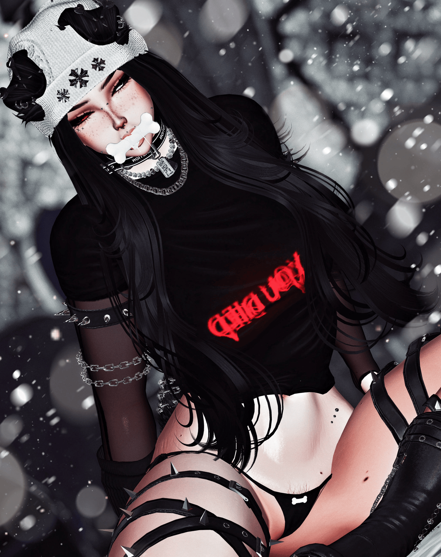 piercings | arm warmer | arm straps | bandages | beanie | belly/leg ribbon | bone gag | bracelets | cap | collar | glasses | headphones | leg chains/wire | mouth gag | muzzle | necklaces | paw pasties | belly piercing