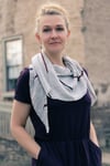 Yarn: Spirited Fibers Fingering (80% superwash merino wool, 20% nylon; 400 yards/366m/100g), shown in Silver; 1 skein, plus about 12 yards each of 3 or more contrasting color fingering weight yarns. Any amount of MC may be used, as well as an infinite number of contrast color scraps.