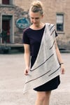 Contrasting garter lines accent the clean stockinette canvas of this sideways swoop shawl. Choose bold monotones or a rainbow of colored leftovers to create your art; the elongated bias shape suits men or women, and can be made to any size.