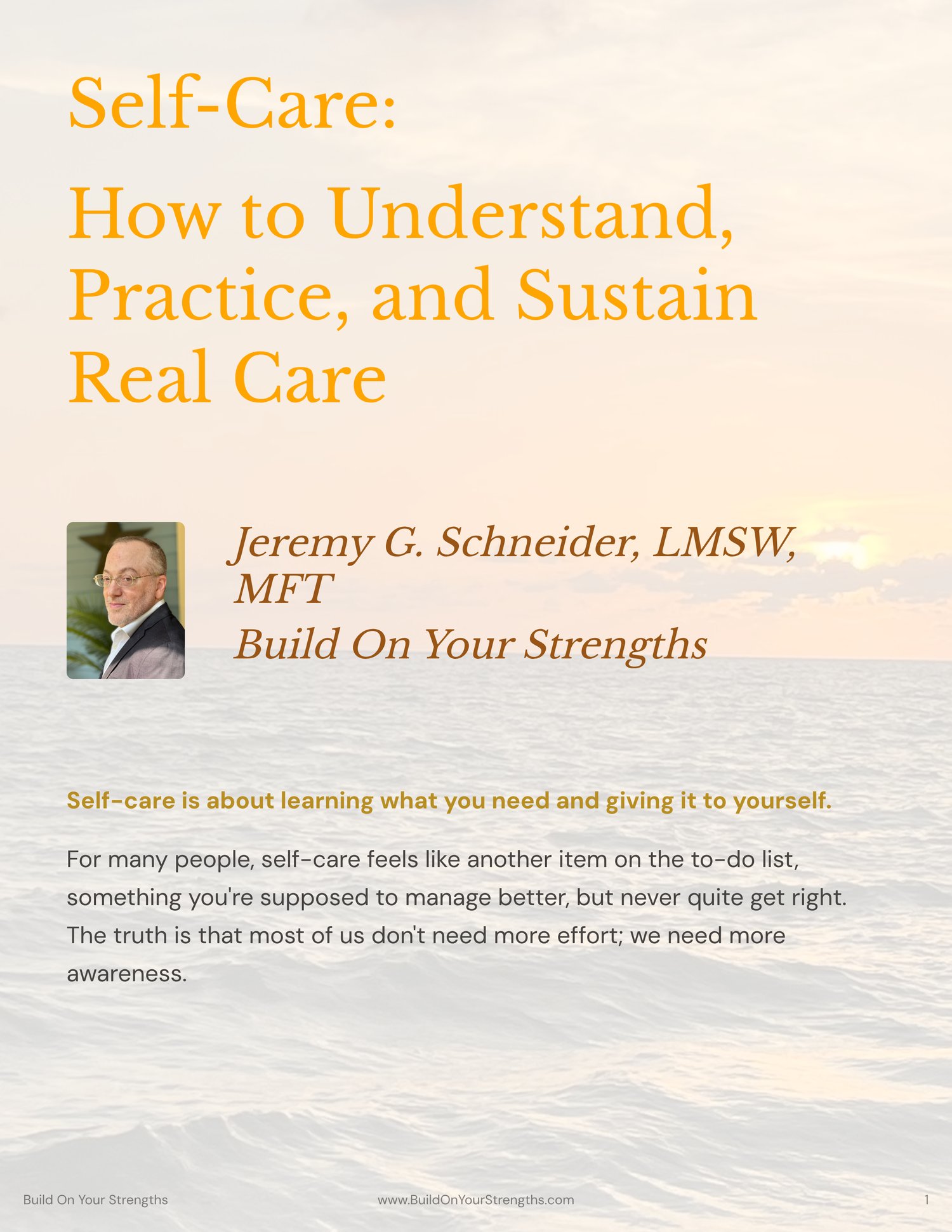 Workbook: Self-Care: How to Understand, Practice, and Sustain Real Care