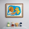 This printable wall art showing ‘best friends’ practically needs no explanation. It is done in minimalistic illustration style and would nicely accent a boy’s room or a child’s room.