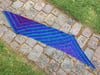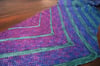 Yarn: 900 yards of fingering weight yarn in two colors (450 yards each). Shawl is not adjustable.