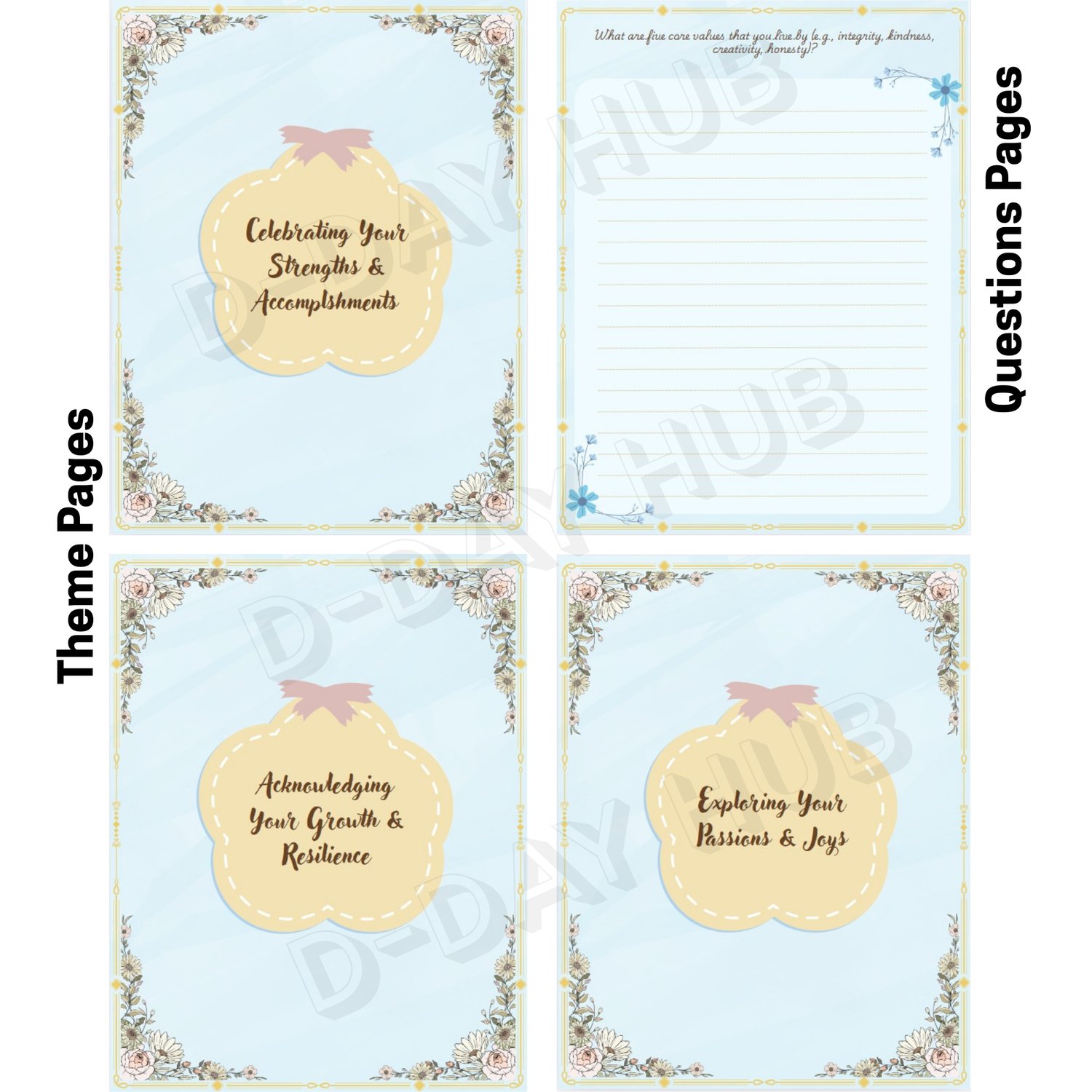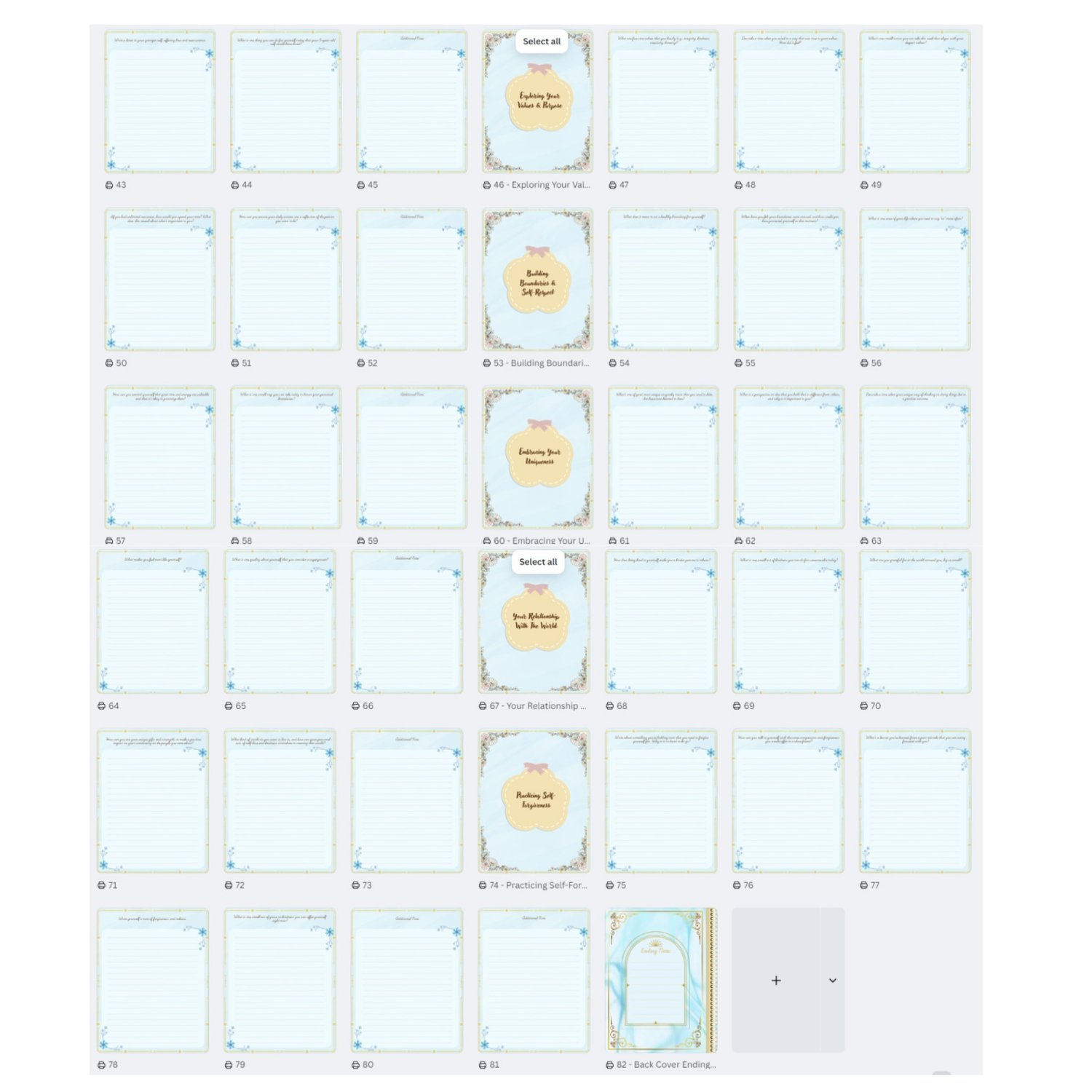 The journal consists of a front cover, 80 pages and a back cover. Within its pages, you will find 11 powerful themes designed to guide your journey, excluding the introduction: