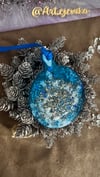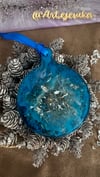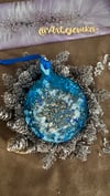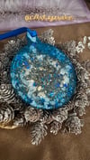 A charming 8 cm diameter ornament, handcrafted from premium Italian epoxy resin. The rich blue color, sparkling star-shaped glitter, and shimmering silver accents create the effect of a dazzling winter wonderland. This ornament will become a bright highlight of your holiday decor.
