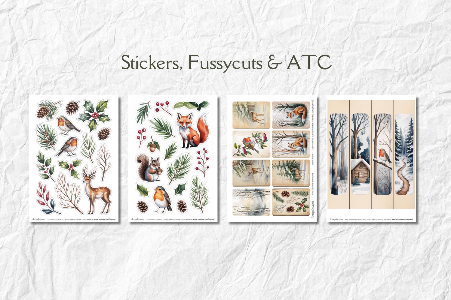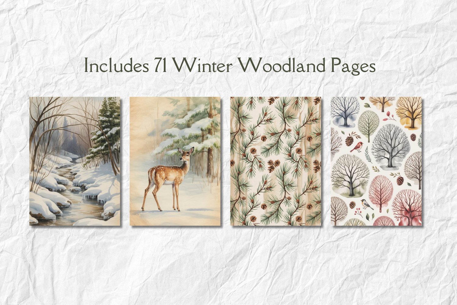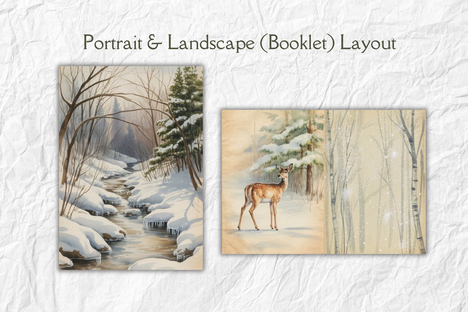 Winter Woodland — 71 Cozy Watercolor Junk Journal Pages | Forest Animals Printable Kit | Deer, Fox, Robin & Snowy Scenes