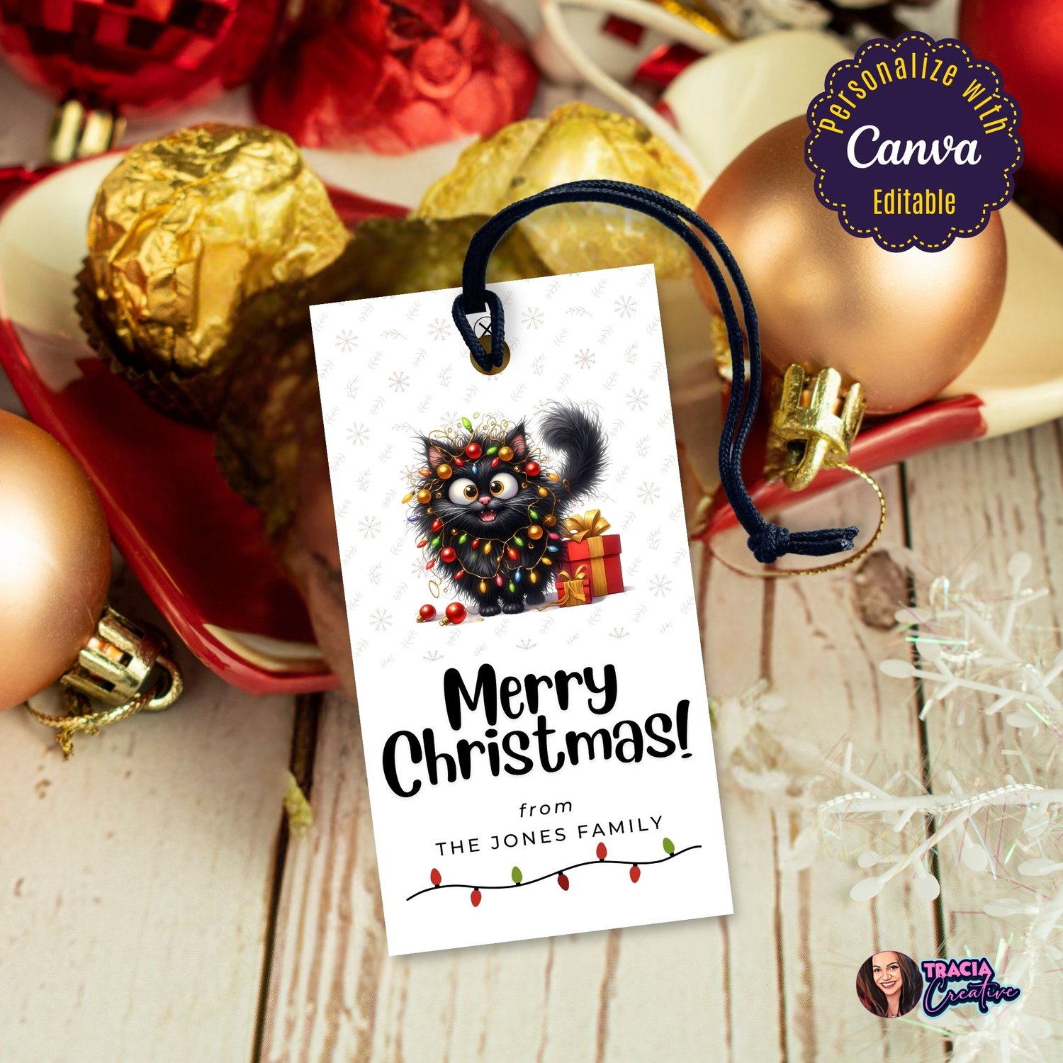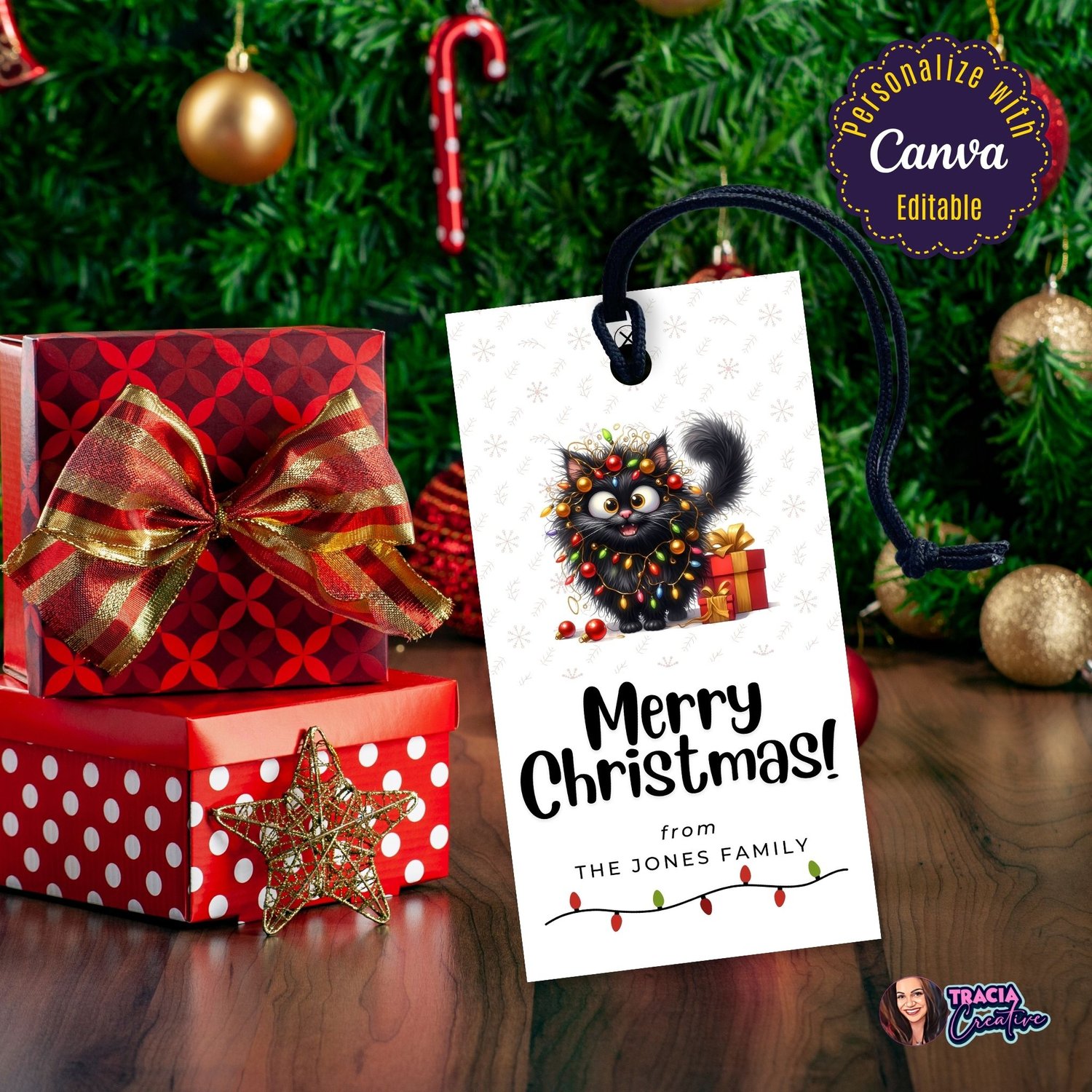 - Editable in Canva: Tailor the gift tag with your name using Canva. You can edit, add, and remove text, change font and font colors, move and resize the text boxes and add your own images. You CANNOT change the graphics included in the design.