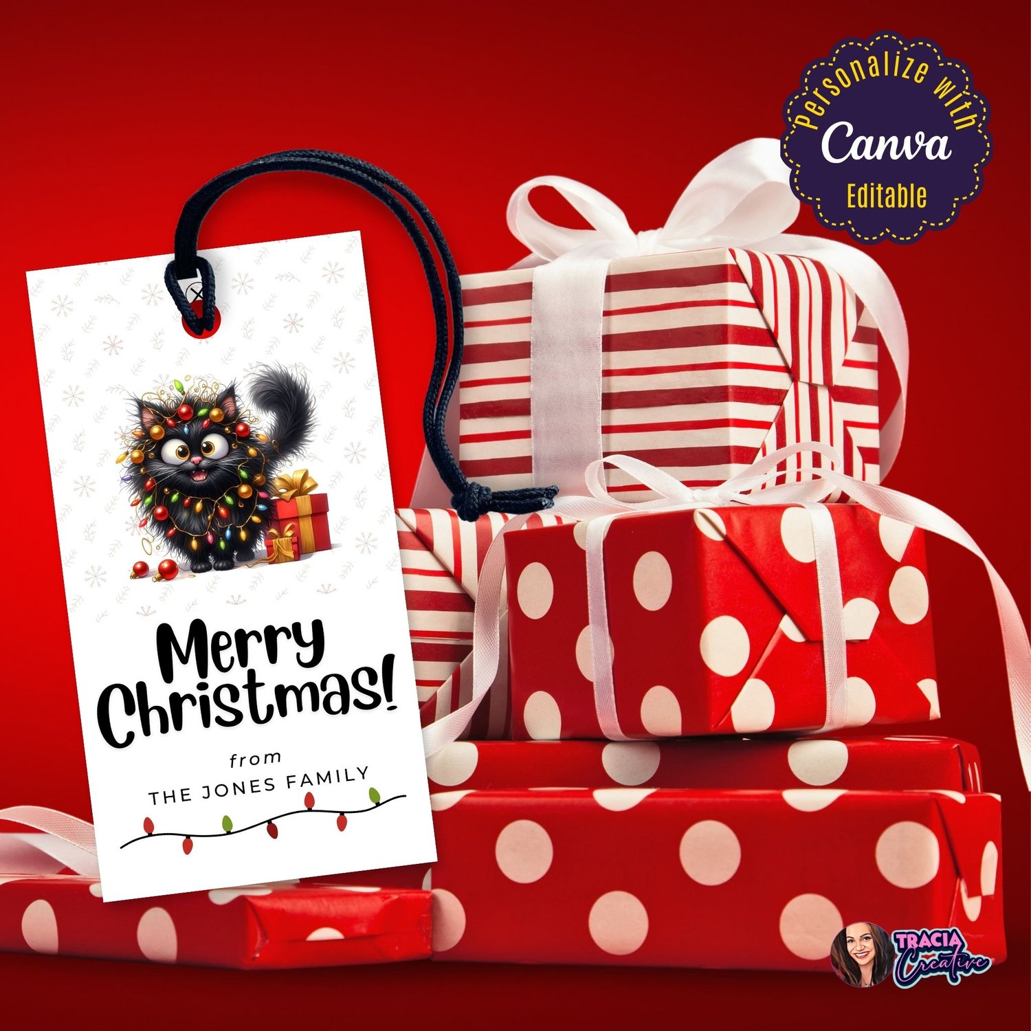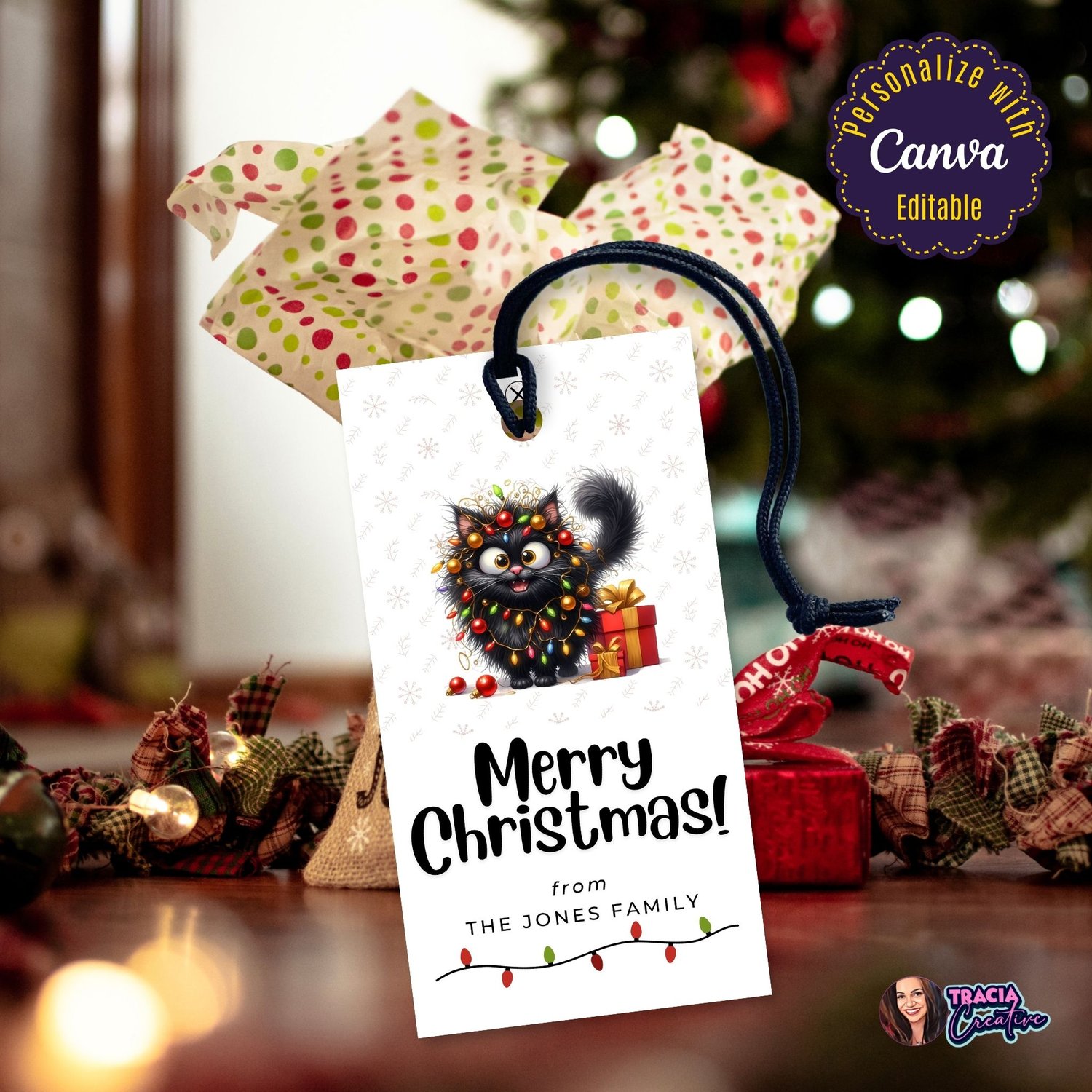 Funny Cat Christmas Gift Tags - Editable Canva PDF for Cat Lovers | Party Printable