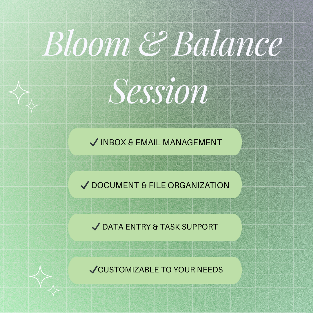 Bloom & Balance is here. I provide practical, behind-the-scenes support for busy (adults) creators, entrepreneurs, and small business owners.