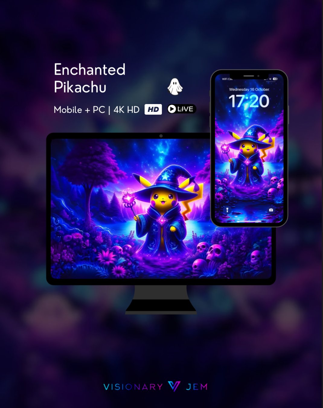 Enchanted Pikachu | Halloween Edition - 4K LIVE HD WALLPAPER | Mobile + PC