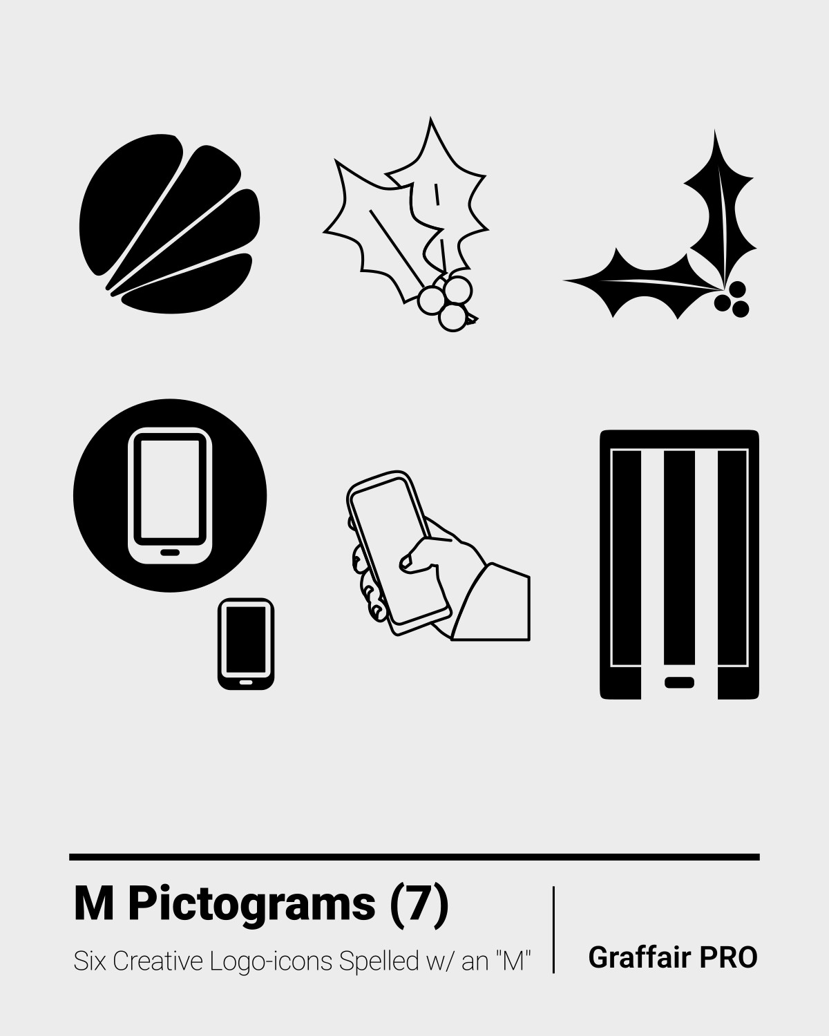M Pictograms (7): The 7th set of 6 pictograms, each beginning with an "M".