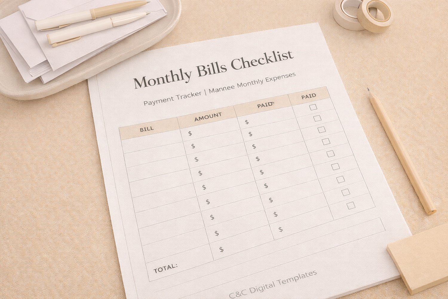 Monthly Bills Checklist – Simple Bill Payment Tracker | Finance Organizer