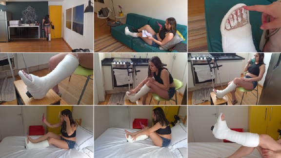Bianca kommt müde nach Hause, da ihr Gips sehr schwer ist. Sie setzt sich auf das Sofa, zieht ihren Stiefel aus, liest das ärztliche Rezept und geht dann in die Küche, um ihre Zehen zu säubern. Danach geht sie ins Schlafzimmer, wackelt mit den Zehen, streicht sanft mit den Händen über den Gips und nimmt ein Video auf, um ihren Gips ihren Freunden zu zeigen.