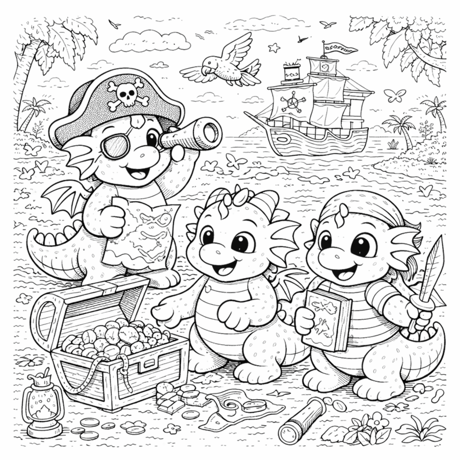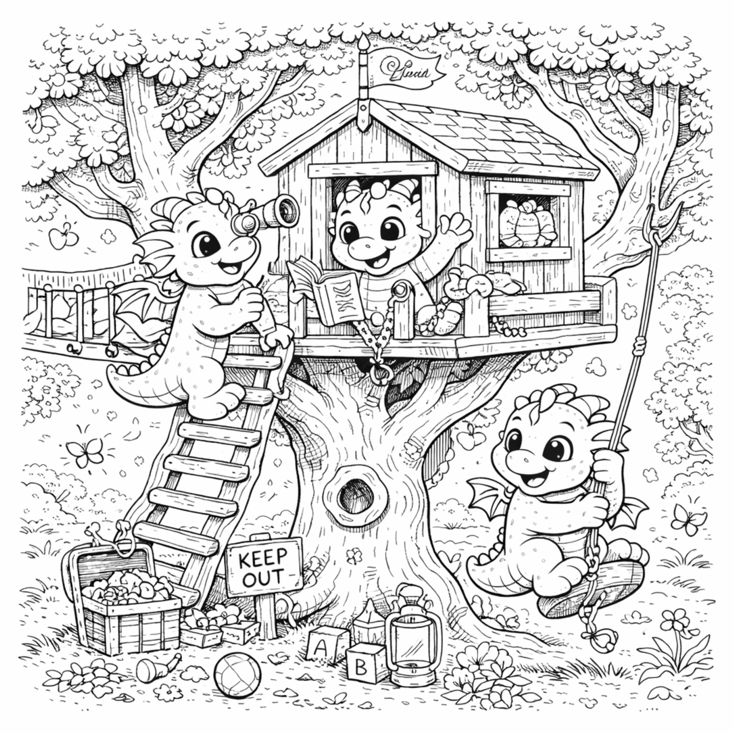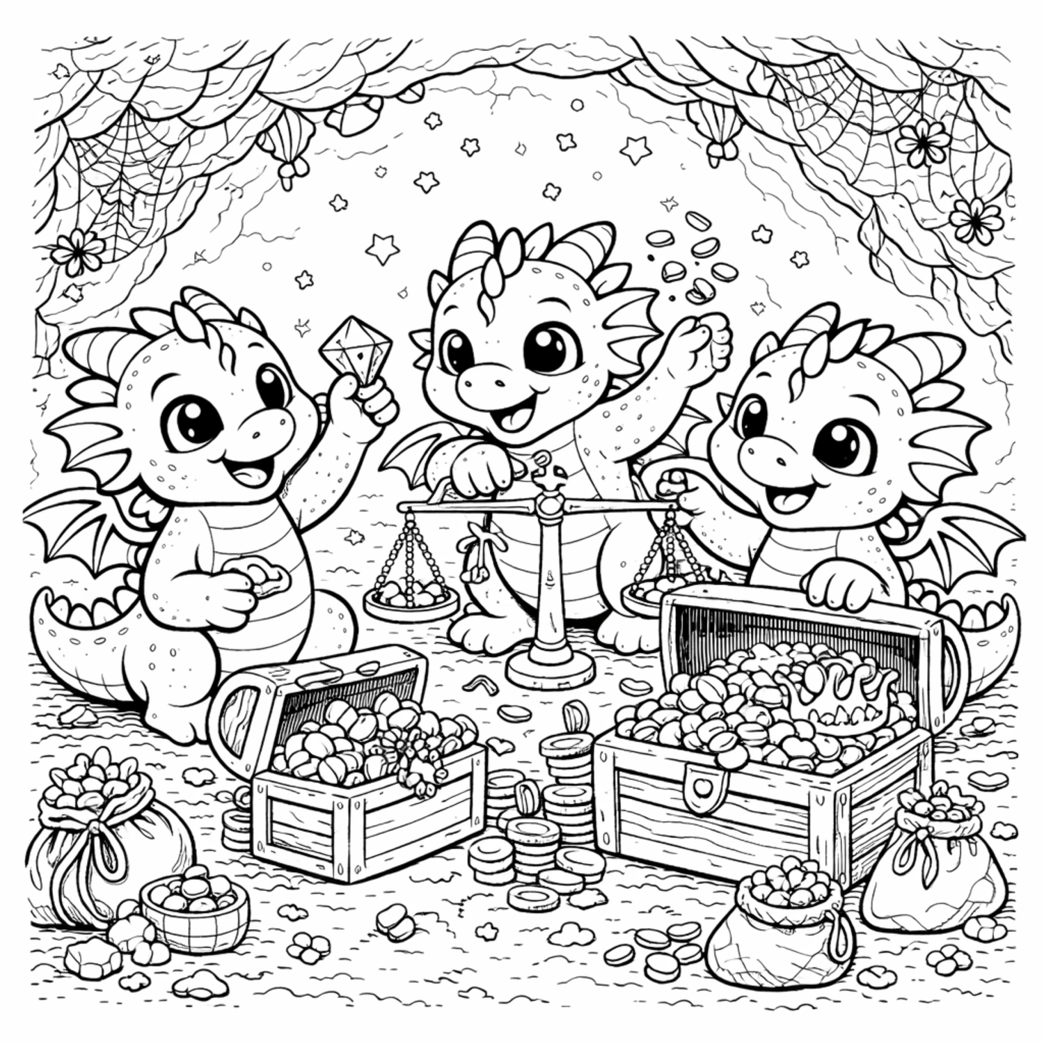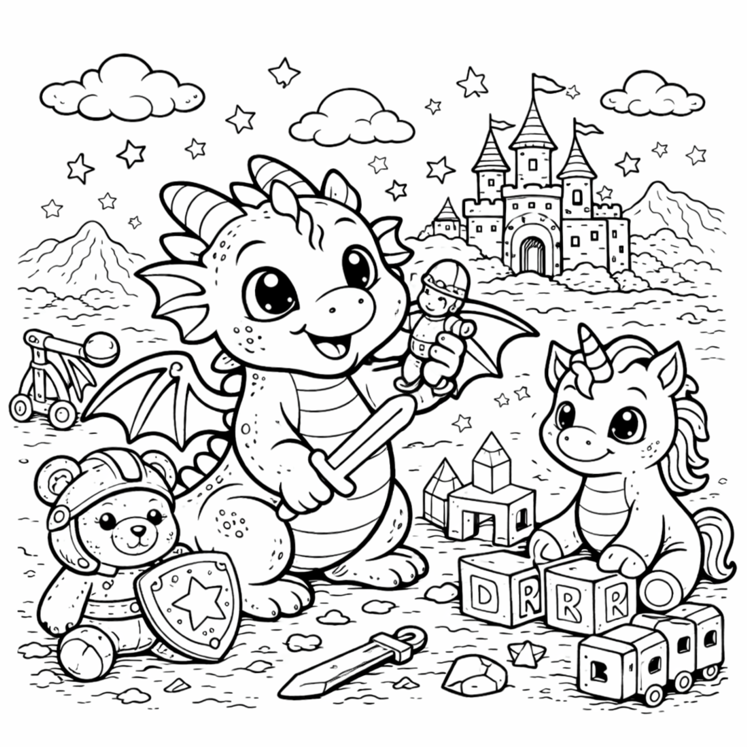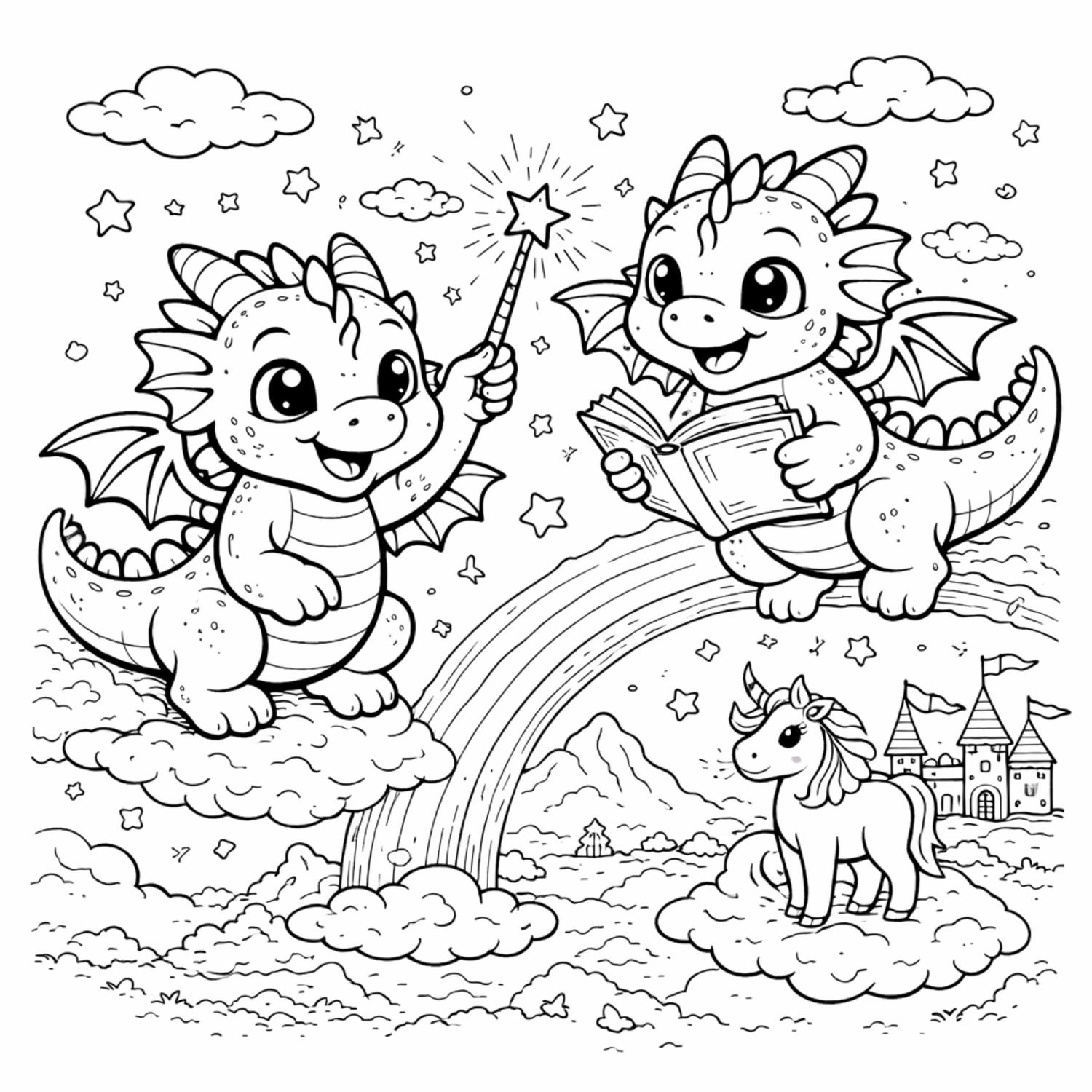 • Cute baby dragon coloring scenes