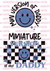 Miniature Version of Daddy in Two Colours, A PNG Design which is Suitable for Clothing, smaller section for top front and larger print for back.