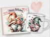 Gnomes with flowers. With/without banner, with/without background. Separate banner & Happy Birthday inc. Sublimation, print. Mother's Day