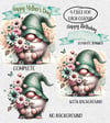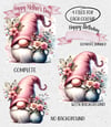 🌟Each gnome has 3 files; with Mother’s Day banner, without banner but with background and no background. Separate banner in each colour way also provided so you can add your own text. Happy Birthday graphic also included.