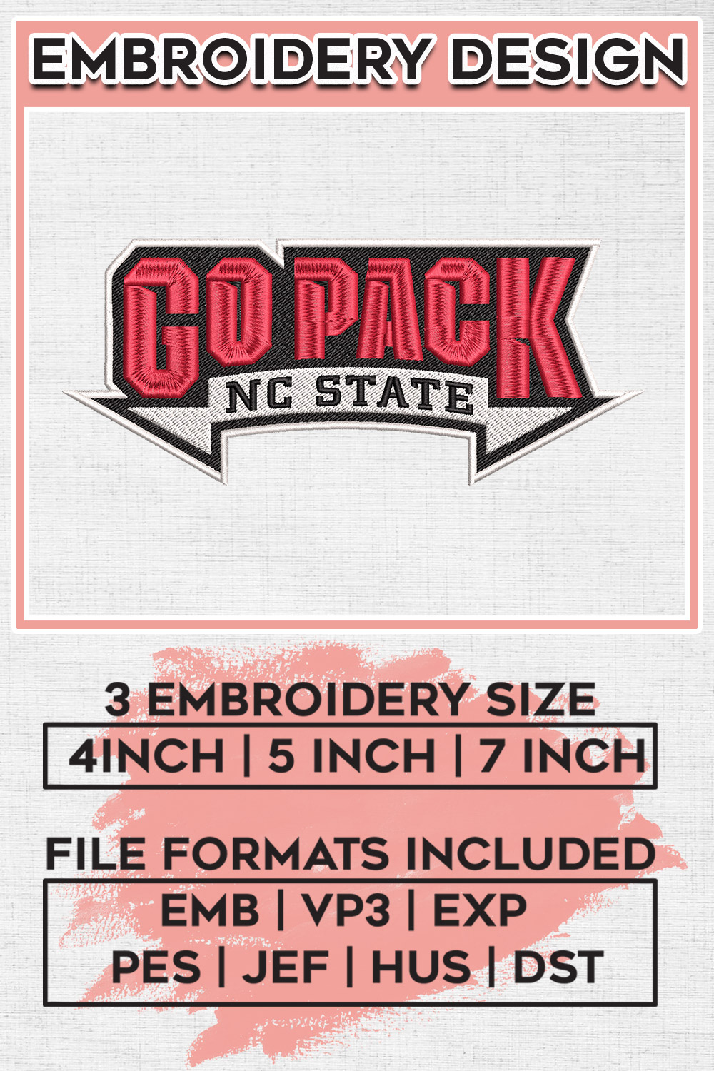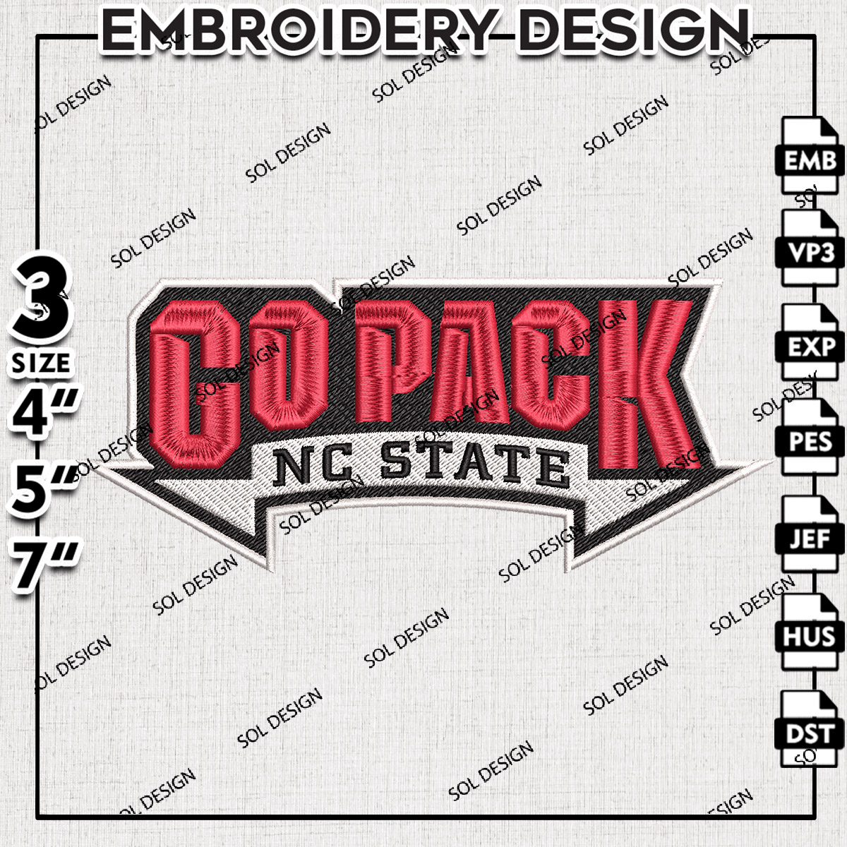 Go Pack NC State NCAA Team Writing Logo Embroidery Designs, NCAA NC State Wolfpack Machine Embroidery Files, NCAA Logo embroidery designs, Ncaa Wolfpack Logo, Digital Download