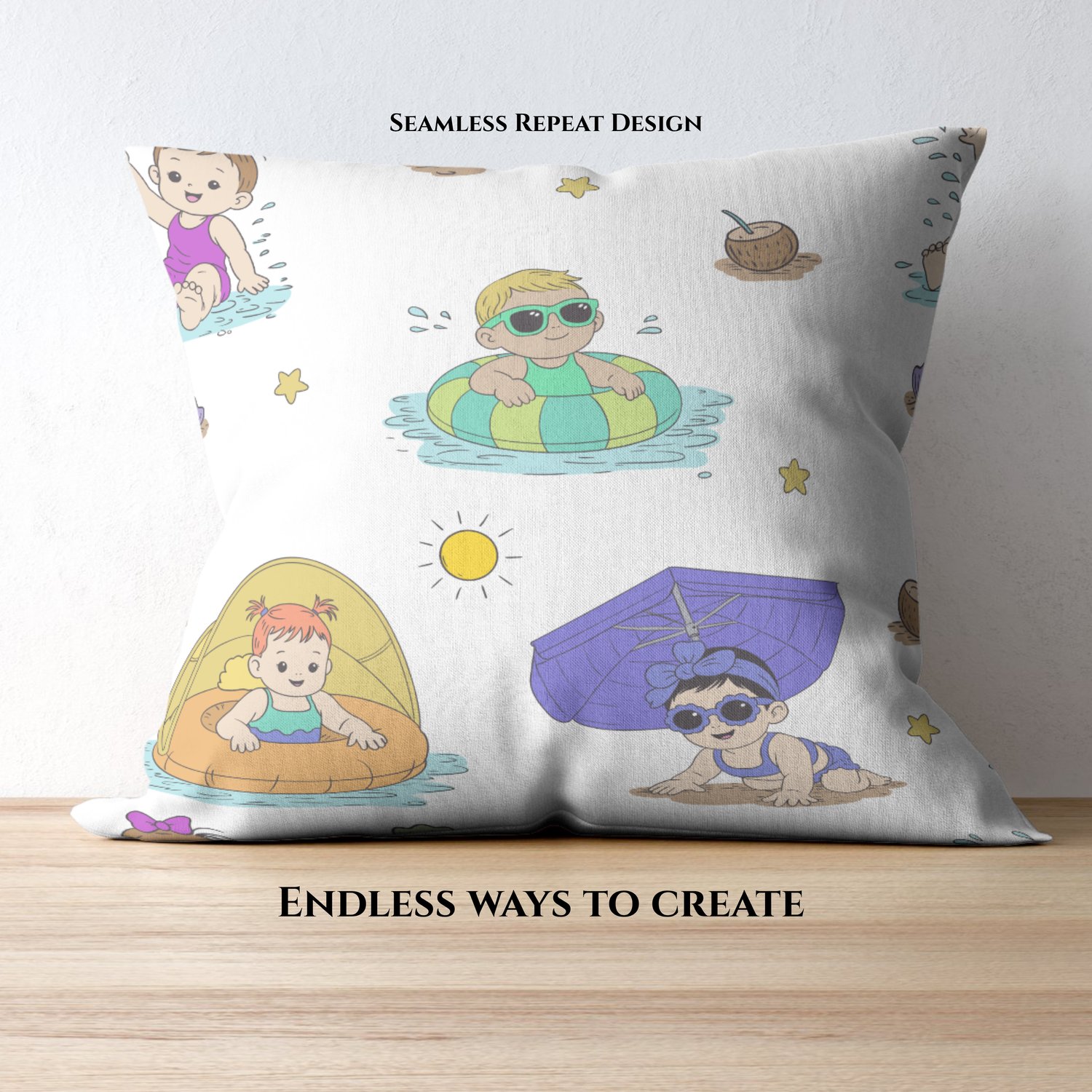 Sun, splashes, and tiny summer vibes ☀️👶 This playful baby seamless pattern is perfect for bright, happy creations!