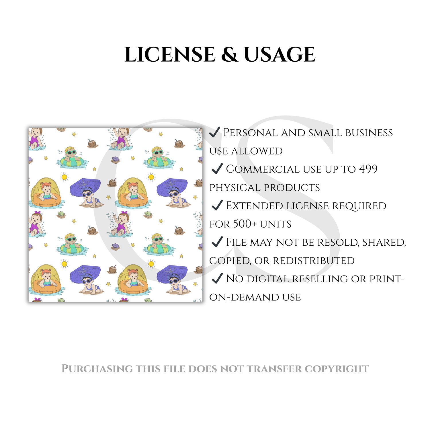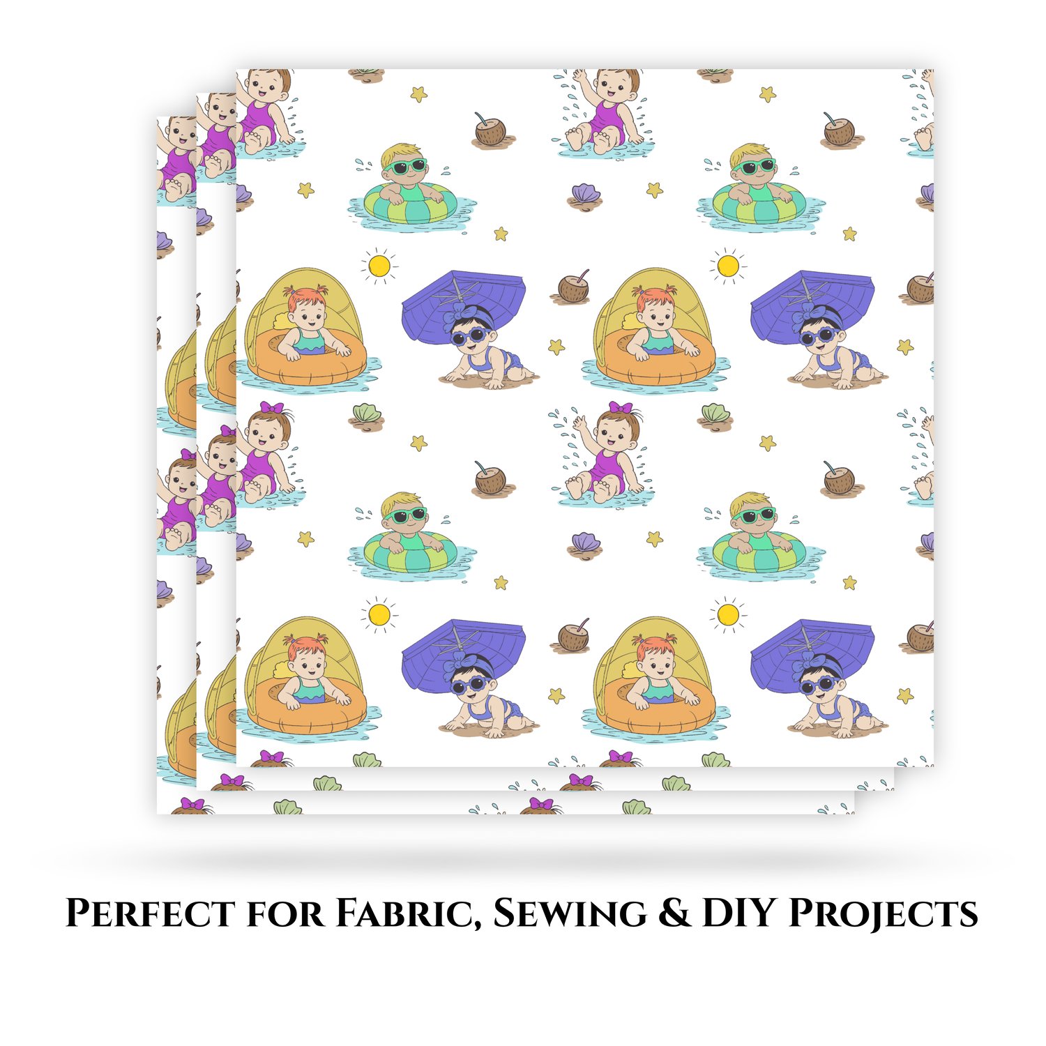 Perfect for baby clothes, summer outfits, blankets, nursery decor, scrapbook paper, and more, this seamless tile repeats effortlessly for a clean, professional finish. Whether you're creating for personal use or small business products, this design is ideal for summer-themed baby items and vacation-inspired creations.